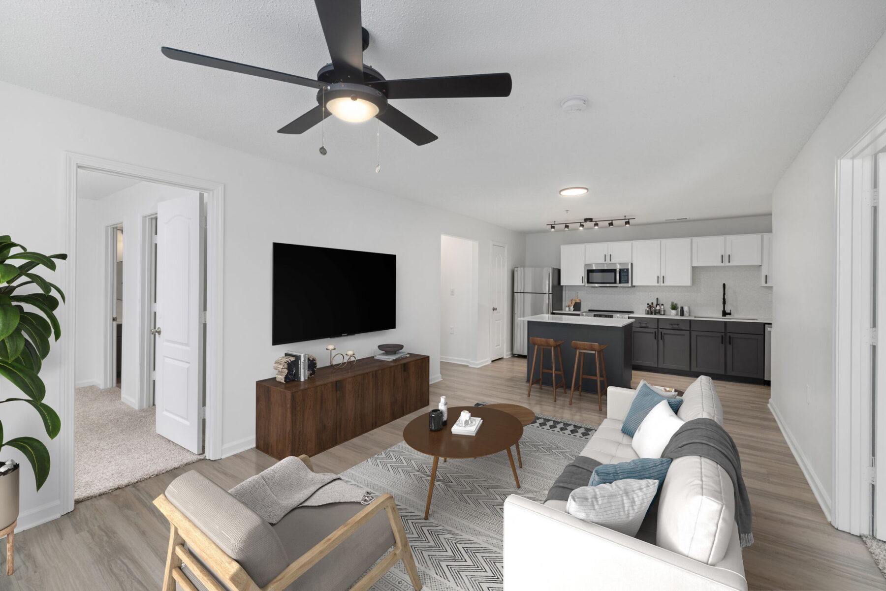 The Churchill offers refined, spacious floor plans crafted for those who appreciate comfort and elegance. Each home welcomes you with warm, luxurious finishes like hardwood-style flooring, designer cabinetry, and quartz countertops, creating a sophisticated yet cozy atmosphere. With features such as in-home laundry appliances and expansive windows that fill each space with natural light, The Churchill combines modern convenience with classic charm.